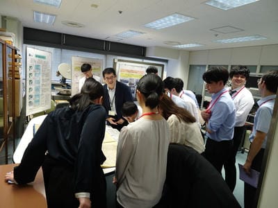 令和7年10月10日(金曜日)、令和7年度に水産庁等総合職として採用された皆さんが、研修の一環として横浜庁舎を訪問されました。午前11時より、中山一郎理事長による機構の組織と役割の紹介ほか4題の講義を受講していただきました。講義の合間の昼食の際は、理事長も同席し、ざっくばらんな意見交換が行われました。さらに、講義の後、4か所の研究室・施設を見学いただきました。これから国の水産行政を担う皆さんですので、この研修が水産研究及び当機構についての理解を深めていただく一助になることを期待しています。
