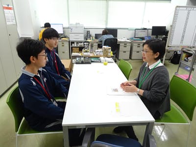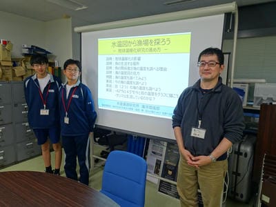 令和7年11月27日、横浜市立浜中学校の2年生2名が、横浜庁舎で職場体験学習をしました。体験内容は、水産物の品質評価研究に関する試験(官能試験体験)、魚介類やプランクトンの観察・計測、及び水温図から漁場を探す体験です。実習生たちは、生きたエビやプランクトンに驚きつつも、水産資源や水産技術に関わるいろいろな研究作業体験について、真剣かつ熱心に取り組んでいました。