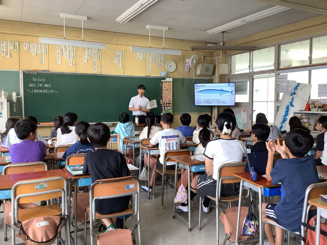 令和7年9月29日に横浜市立山内小学校で開発調査センター漁業第三グループの鈴木研究員が「さんま棒受網漁業」、同グループの大重研究員が「未利用資源の活用と資源管理の基本」についての出前授業を行いました。